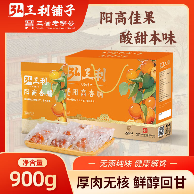 📚 弘三利阳高杏脯900g原味甜蜜饯果脯杏干办公室休闲零食礼盒组合