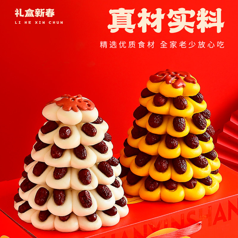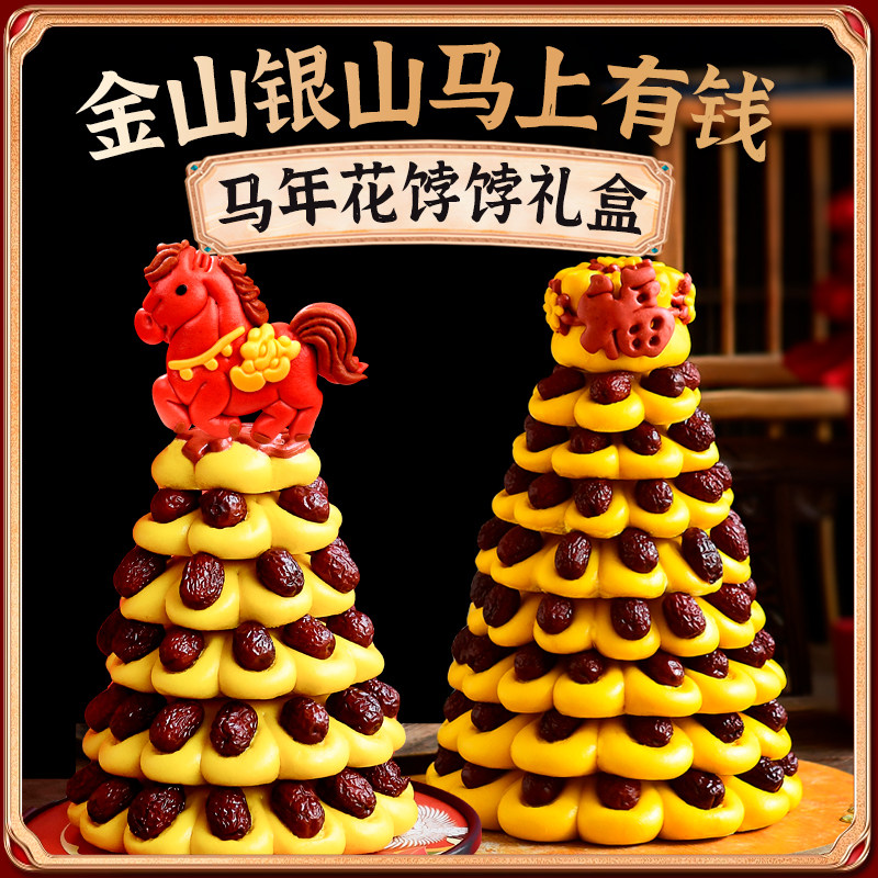 📚 山东过年上供馒头高档枣塔礼盒年货花饽饽春节送人礼品好寓意糕用