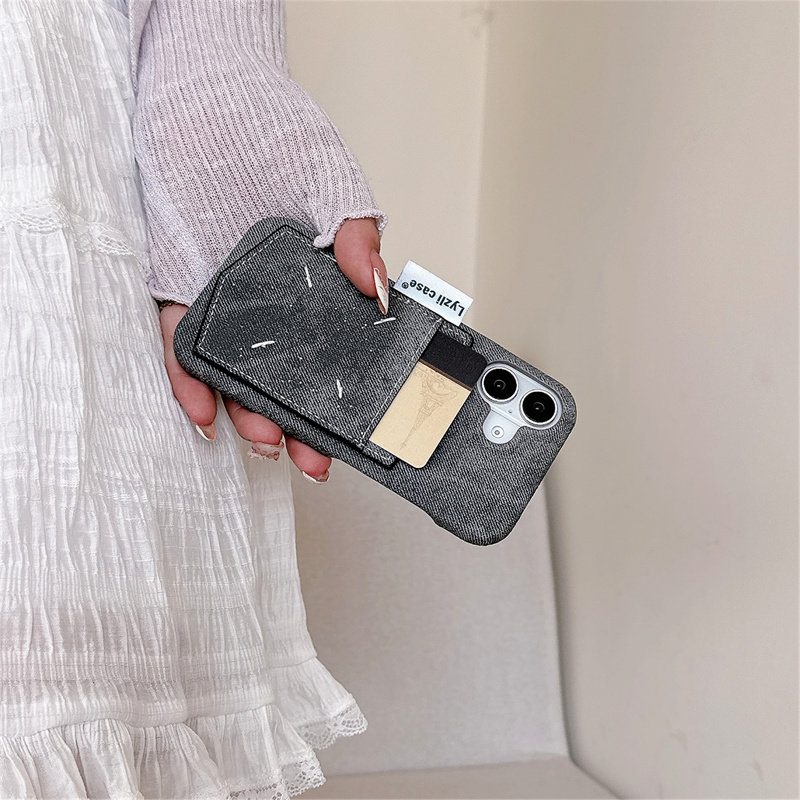 📚 欧美潮牌闪粉牛仔可插卡皮质适用苹果16promax手机壳15pro保护套iPhone14放卡壳13pro小众苹果12四角缝线16套