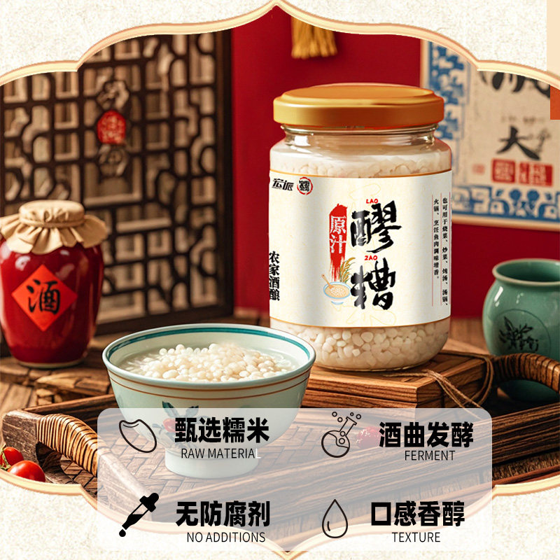 📚 宏派原汁原味甜酒酿醪糟米酒酒糟月子食用非血糯黑米四川曲子甜酒