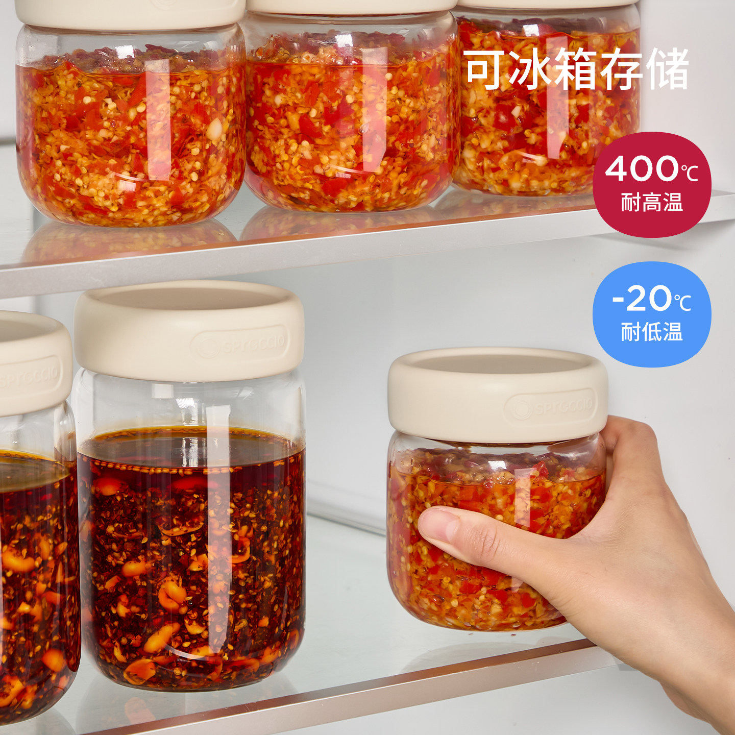 📚 辣椒酱专用罐高硼硅玻璃装蒜蓉酱的罐子密封油罐空瓶子剁椒分装瓶