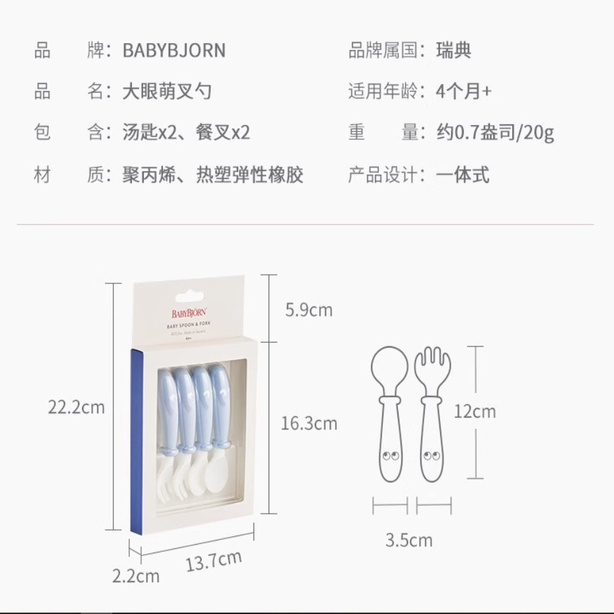 📚 瑞典babybjorn宝宝防滑餐盘儿童勺子叉子吃饭餐具宝宝辅食叉勺碗