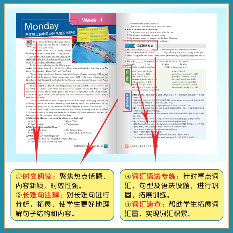 📚 时文阅读第六辑新版哈佛英语英语七年级八九年级上册下册第三辑阅读理解完形填空短文哈弗英语小升初初中训练地理同步时代