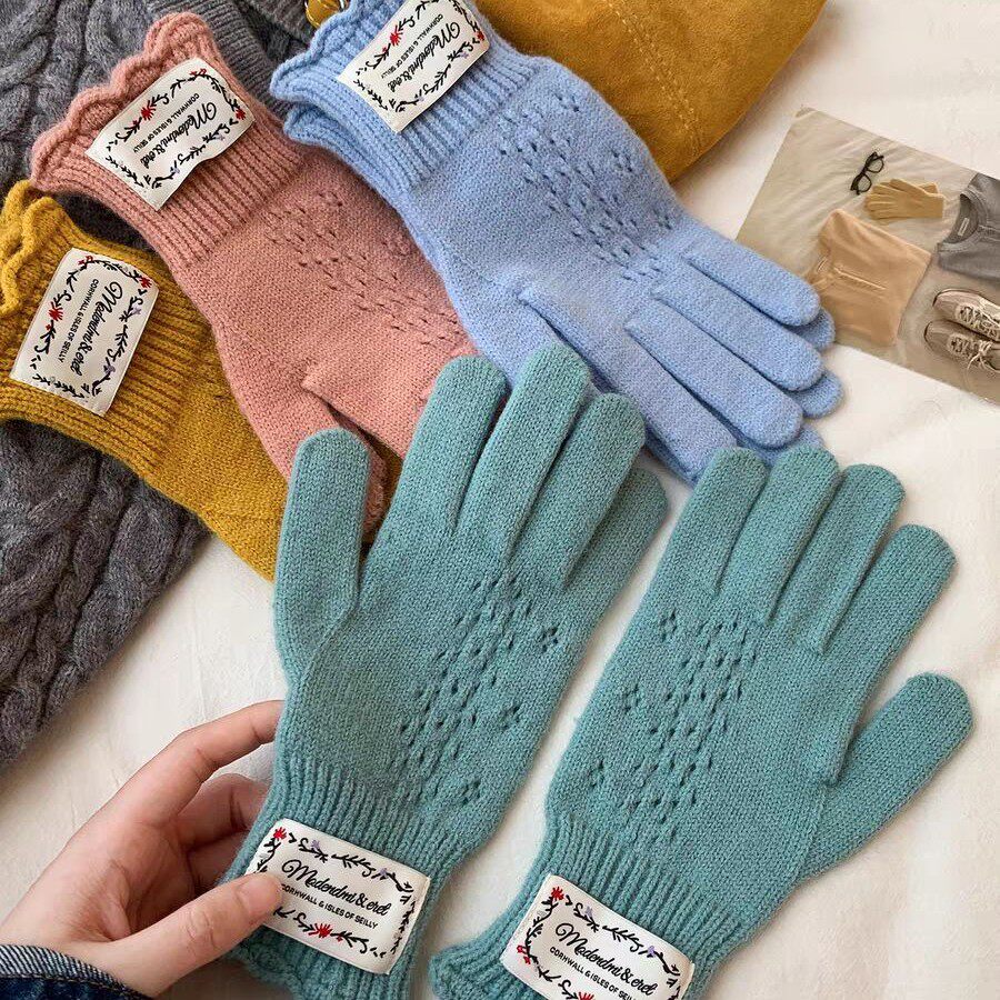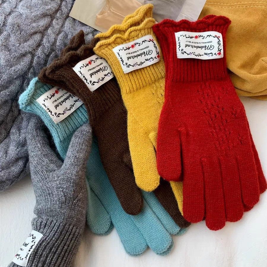 📚 韩国rockfish同款红色蕾丝镂空毛线手套露指骑行抗寒保暖可触屏冬