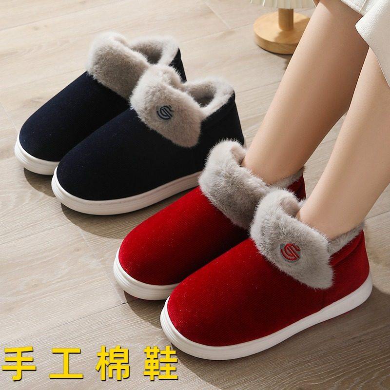 📚 传统老式棉鞋手工包跟厚底棉拖鞋女冬季止滑室内保暖外穿孕妇加绒