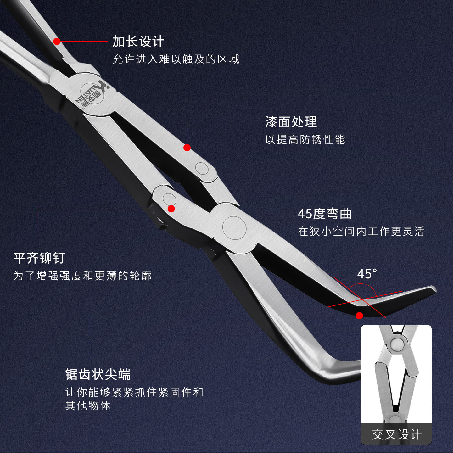 📚 加长尖嘴钳13寸高强度双关节设计省力弯嘴钳扁嘴钳夹持钳火花塞钳
