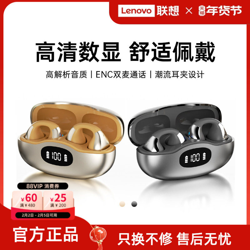 📚 联想生态品牌异能者耳机蓝牙无线夹耳式电量屏显高清音质超长续航