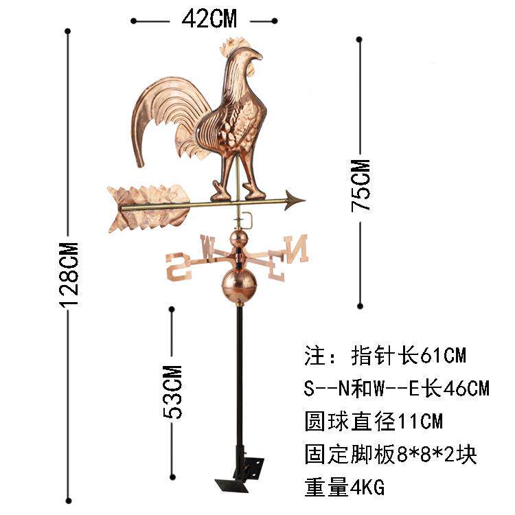 📚 弘晨厂家直销园艺亚马逊紫铜工艺全金属风向标工艺装饰公鸡风标
