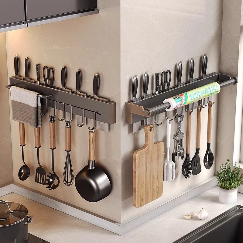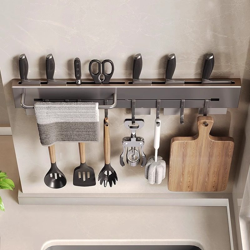 📚 不锈钢免打孔刀架置物架多功能厨房刀具收纳架壁挂式菜刀架挂架子