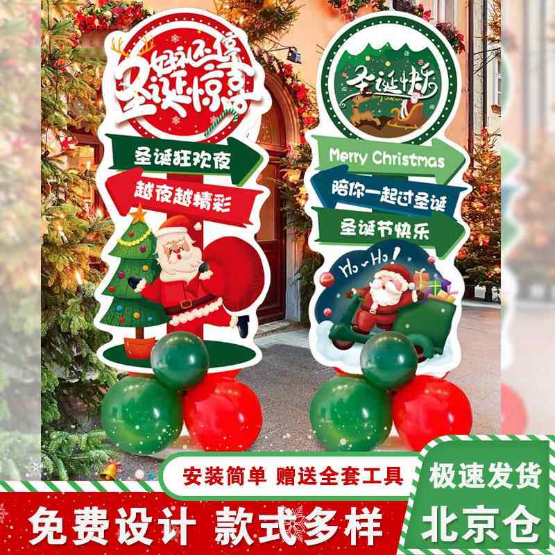 📚 圣诞节店里装饰场景布置立柱新年公司装饰用品kt板商场4S店摆件