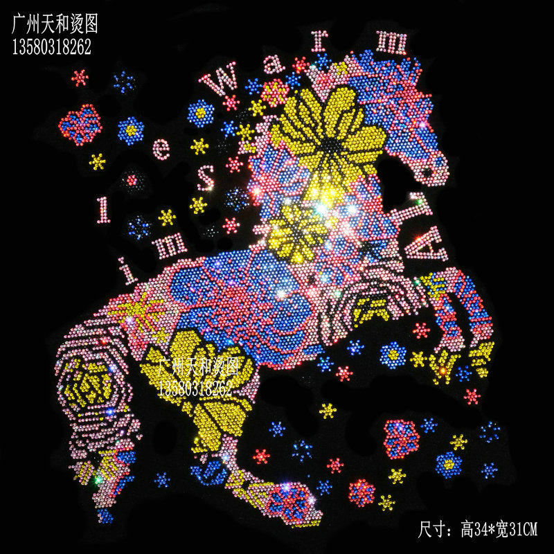📚 超闪抱枕窗帘彩色骏马儿衣服烫钻图案贴新款服装辅料饰品工厂新款
