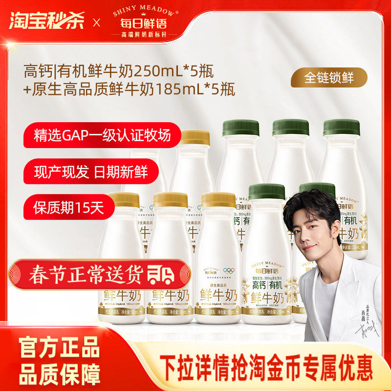 📚 【肖战推荐】每日鲜语高钙有机鲜牛奶250ml*5瓶+鲜奶185ml*5瓶