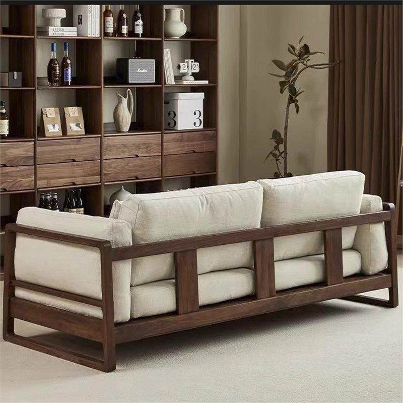 📚 新中式单排沙发客厅2025新款高端胡桃木色实木组合布艺单人家用可
