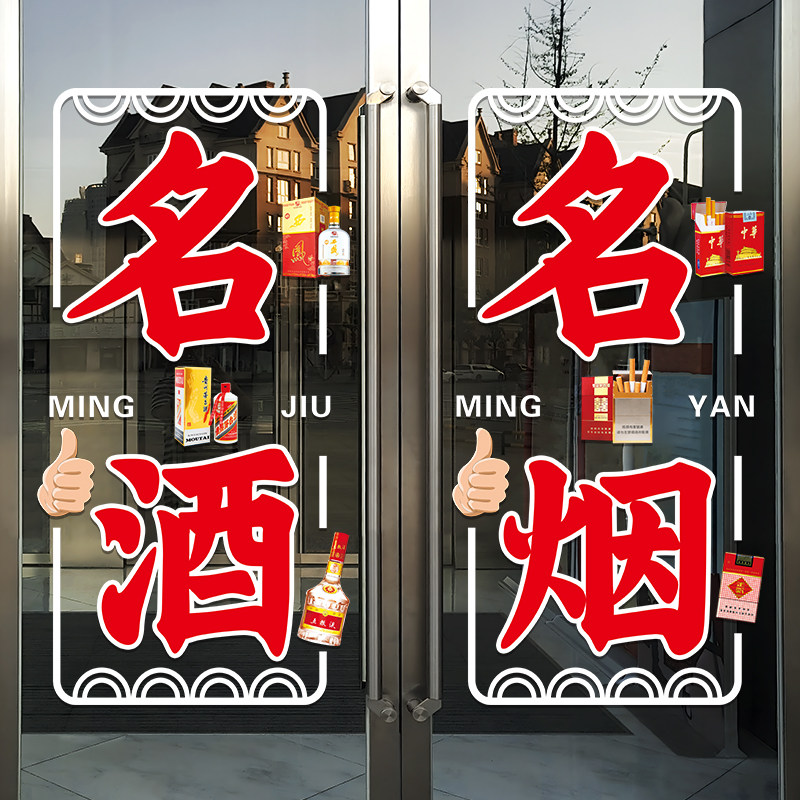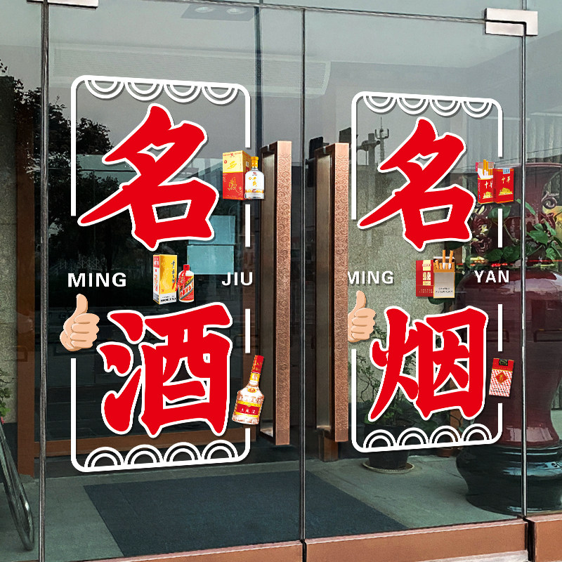 📚 烟酒超市玻璃门贴纸便利店名烟名酒水饮料广告文字贴橱窗静电贴画