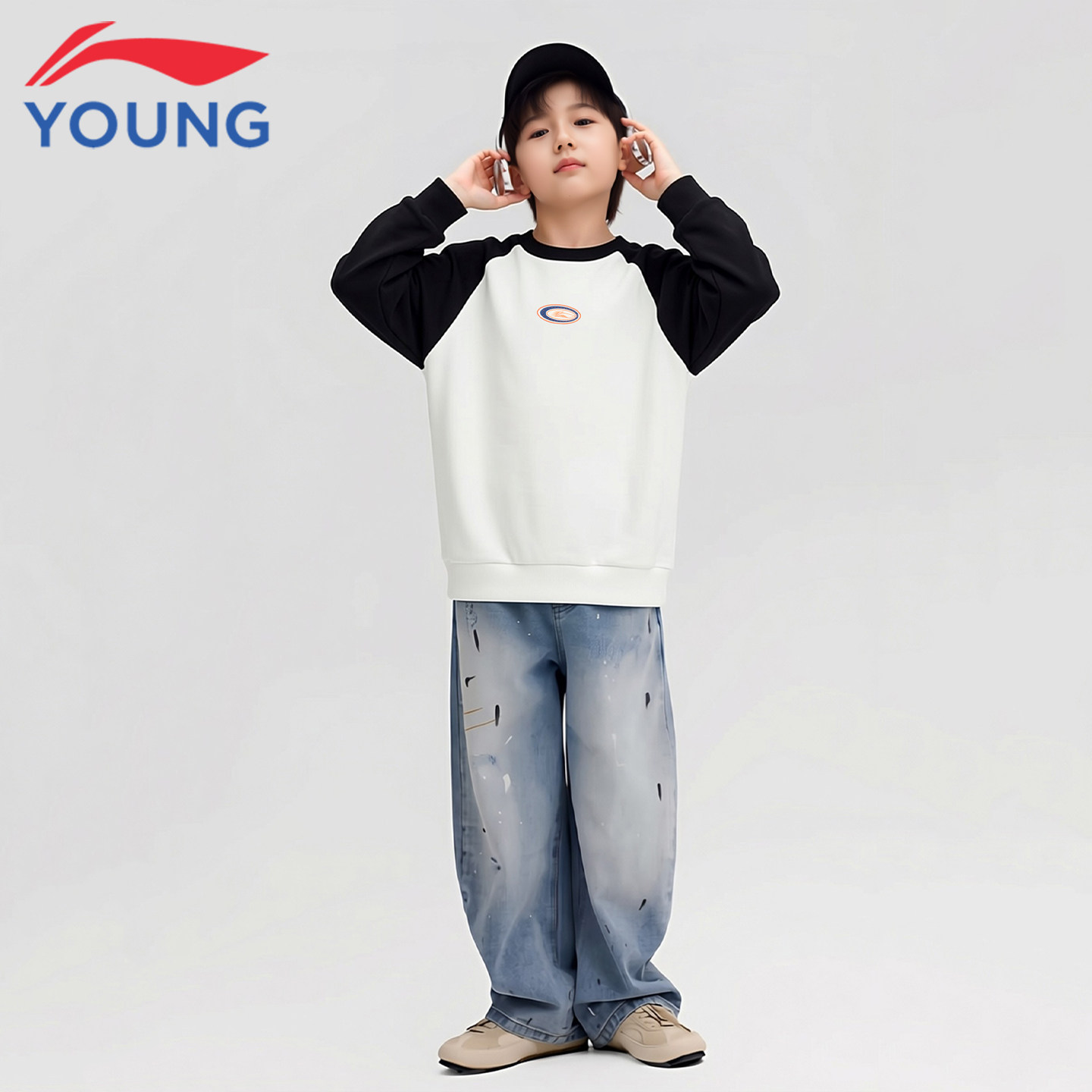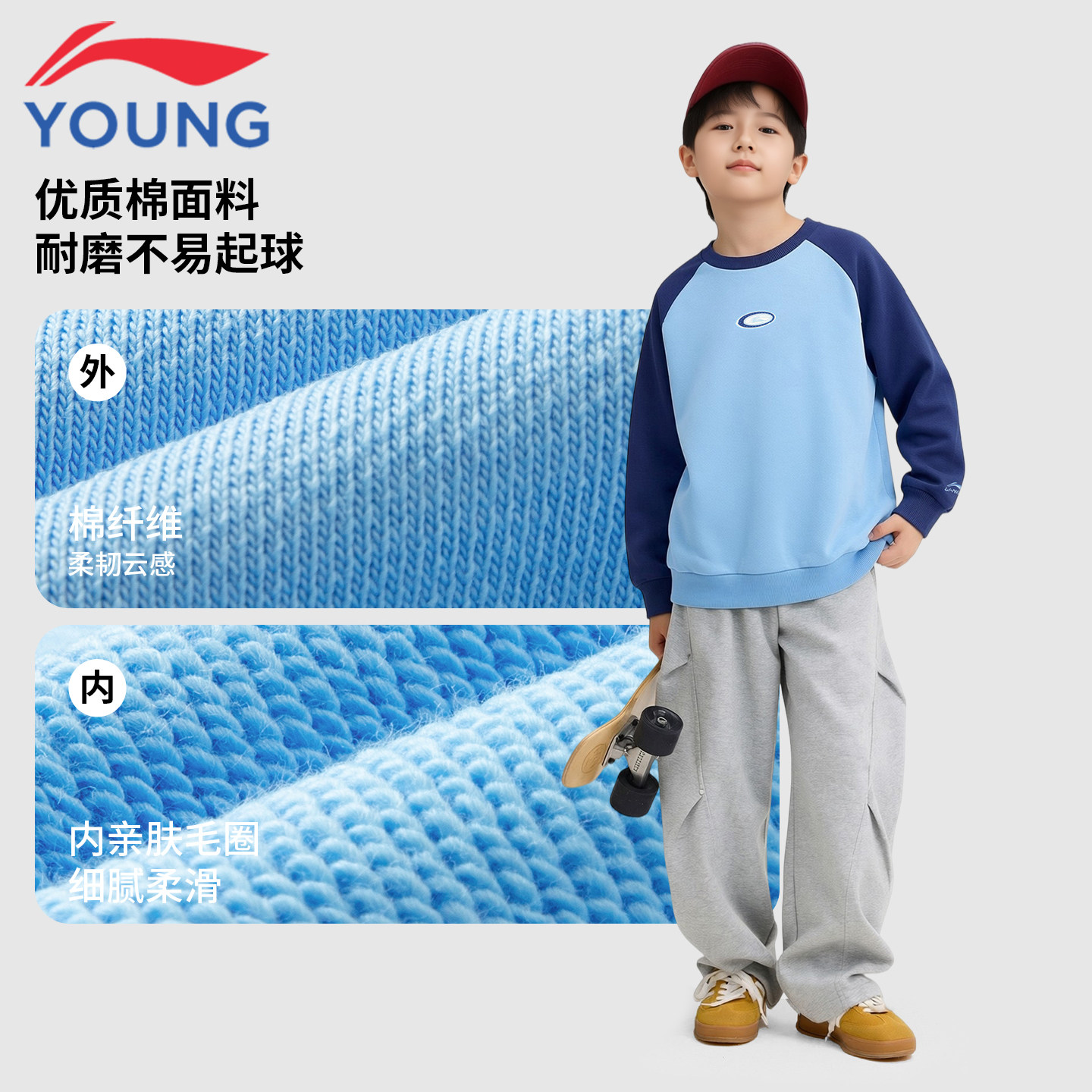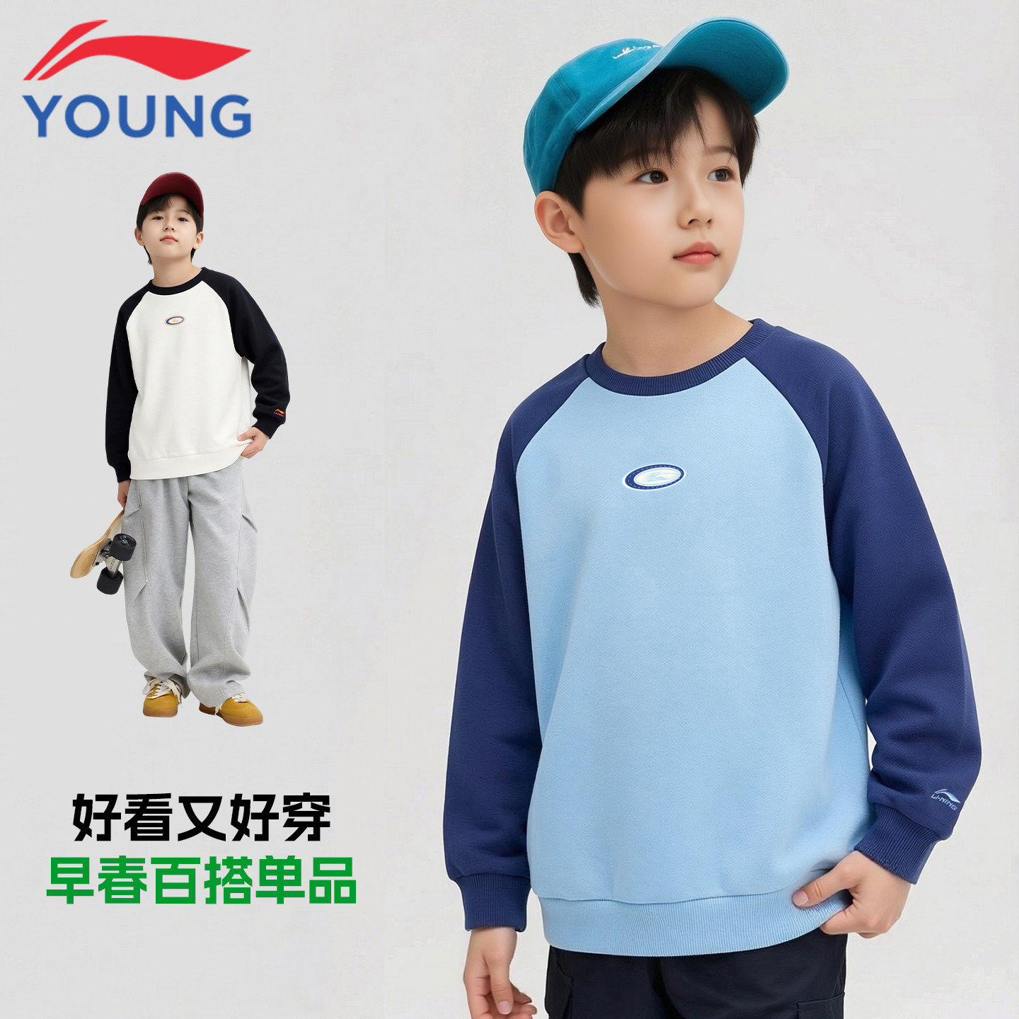 📚 李宁童装儿童卫衣男童中大童春季新款青少年宽松撞色运动潮牌上衣