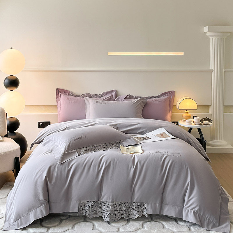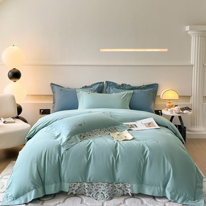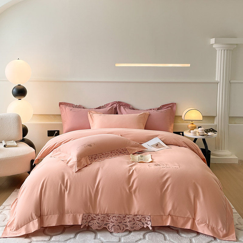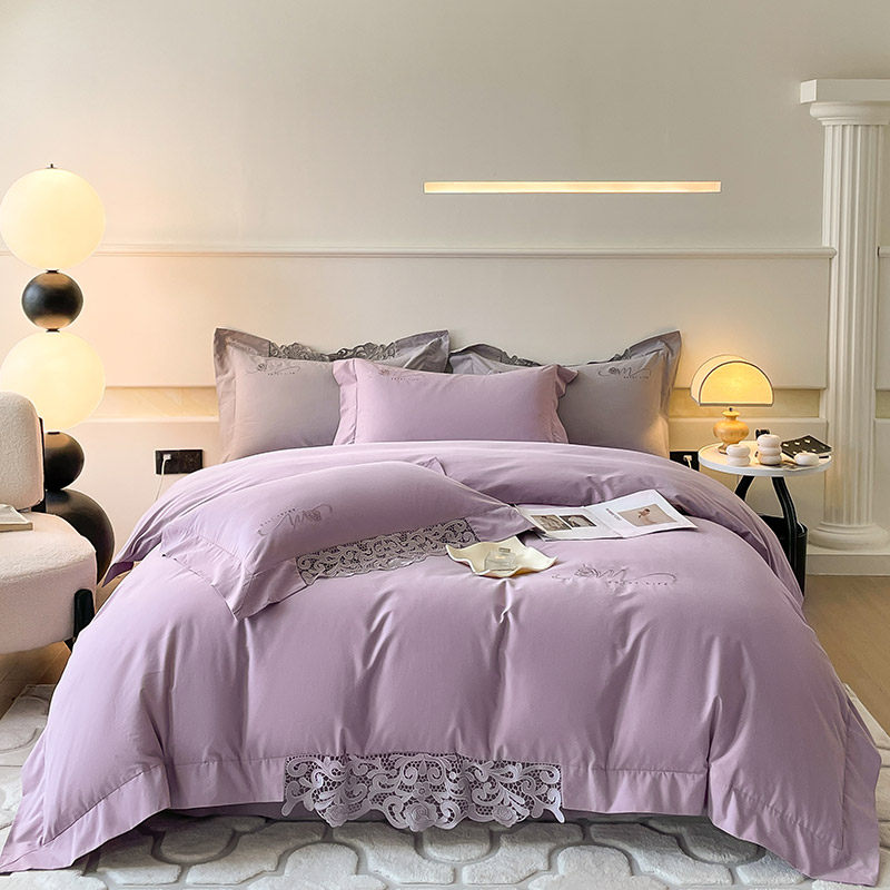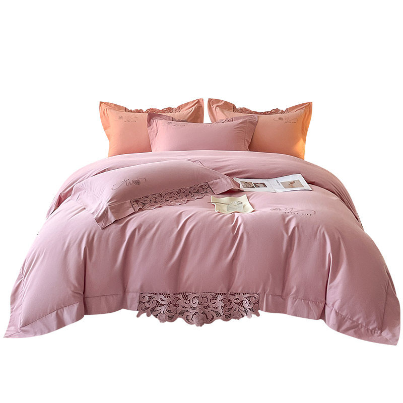 📚 高端100支蕾丝刺绣磨毛保暖四件套全棉简约轻奢加厚床单被套法式