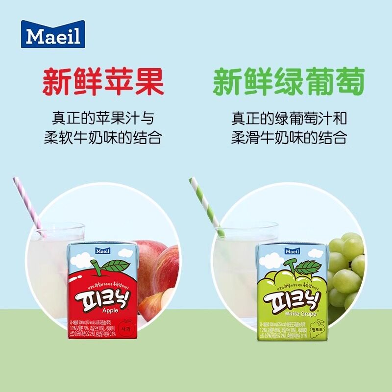 📚 韩国进口Maeil每日必口利果汁白葡萄苹果饮料水果牛奶儿童picnic