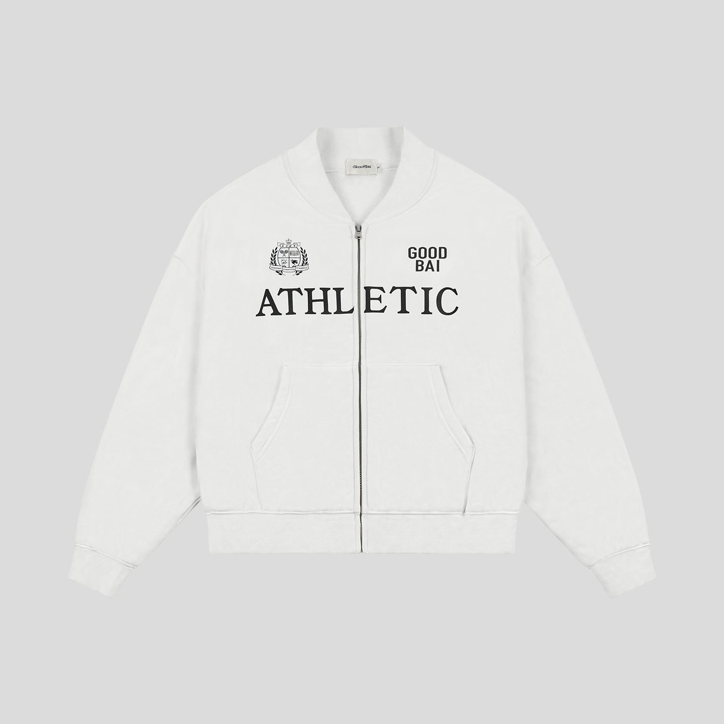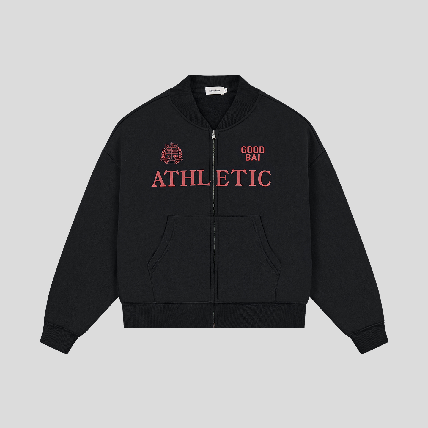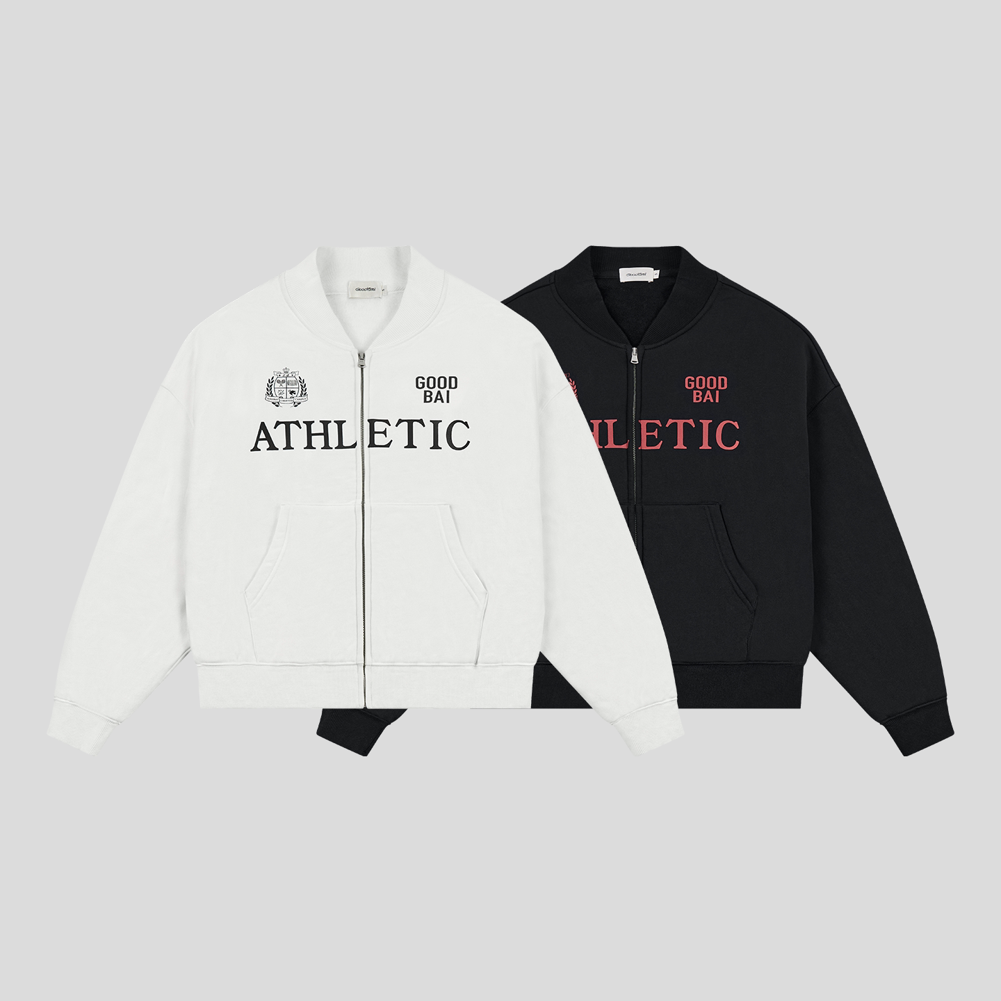📚 GOODBAI ATHLETIC粗体logo印花棒球领拉链长袖卫衣外套