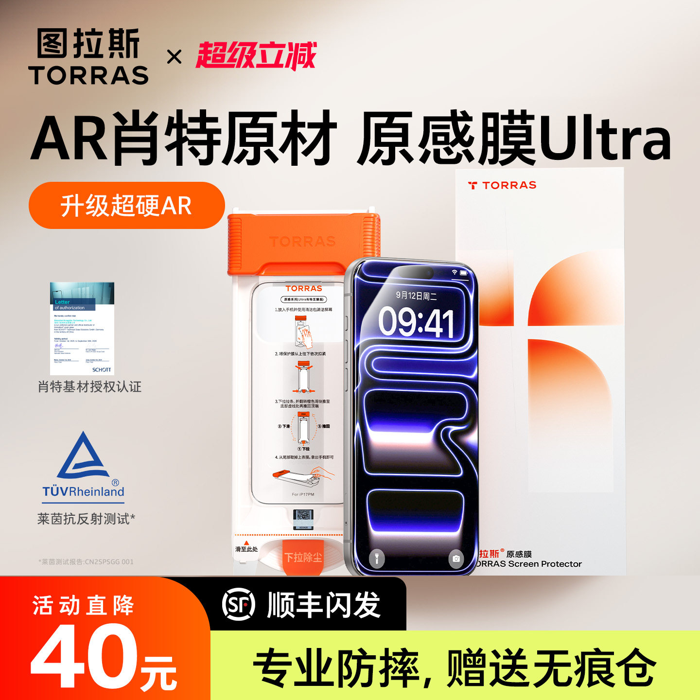 📚 【肖特原材】图拉斯原感膜Ultra适用苹果17ProMax钢化膜Phone17保护AR增透抗反射16屏幕官3D热弯手机pm新款+