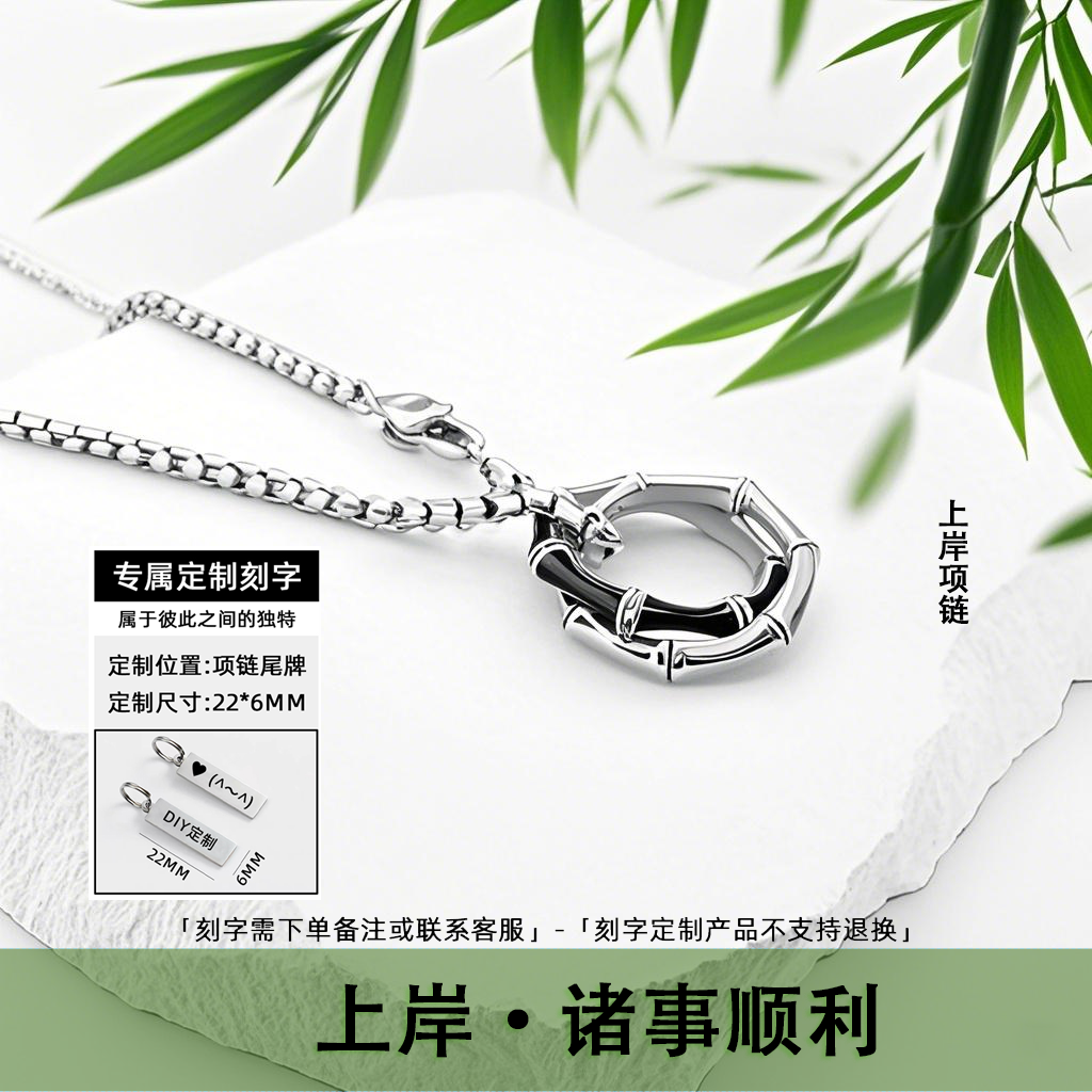 📚 FDK节节高升竹节考试上岸项链男款男生男士双环七夕送男友可刻字
