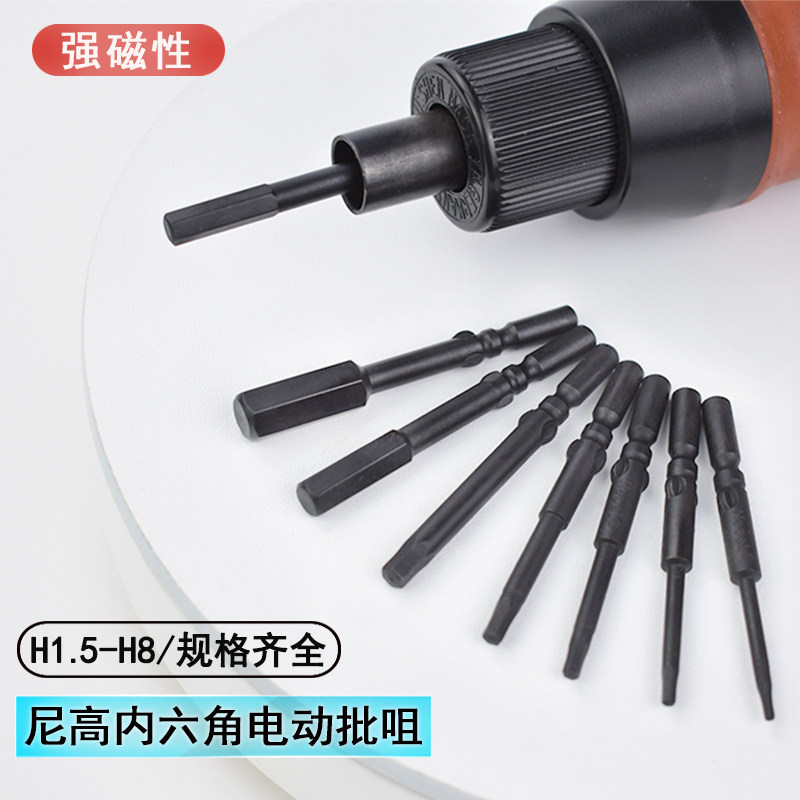 📚 尼高磷化黑内六角电批头801电动批头5mm柄强磁加硬风批起子螺丝刀