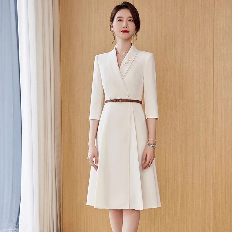 📚 米白色正式场合连衣裙女气质时尚西服裙大码主持人高级感职业正装