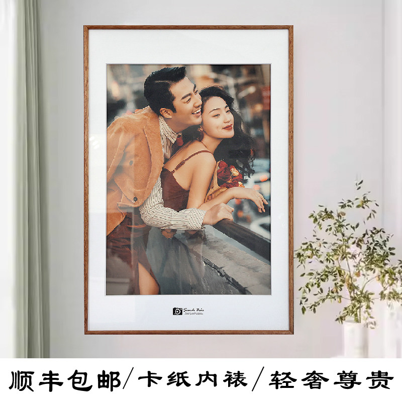 📚 婚纱照相框挂墙床头沙发背景墙洗照片制作成实木相框结婚照摆台