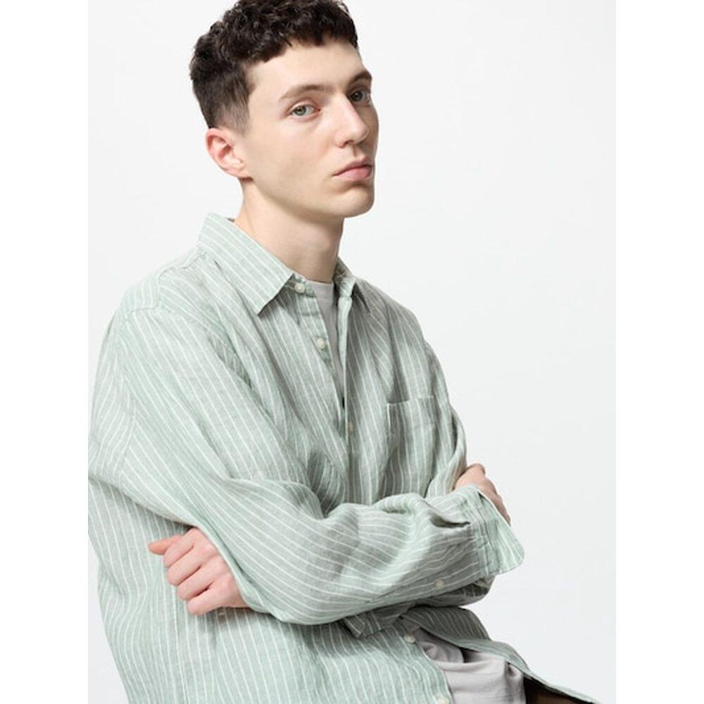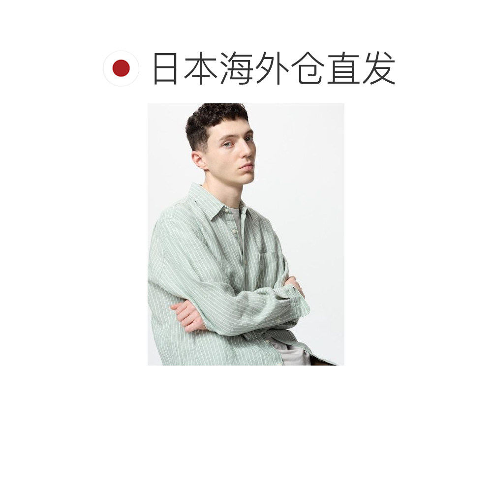 📚 日潮跑腿UNIQLO优衣库 优质亚麻衬衫/条纹 52 GREEN MEN XS新款