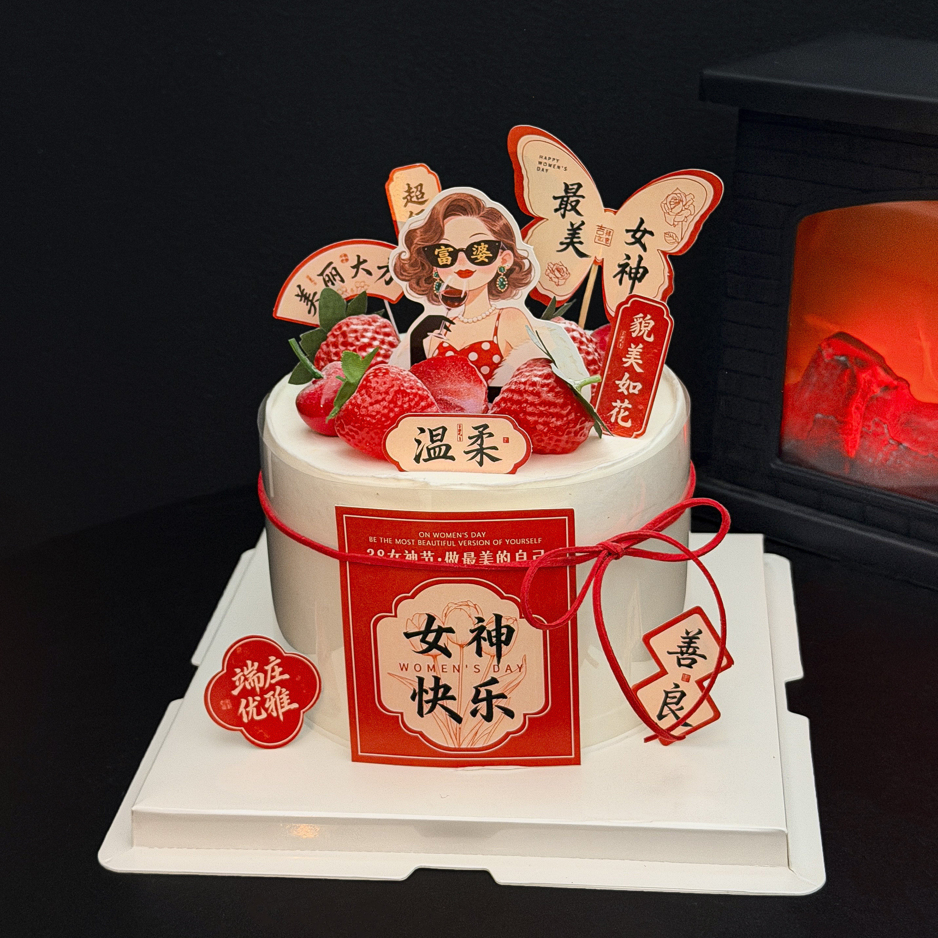 📚 38女神节蛋糕装饰女神节快乐温柔善良美丽大方貌美如花富婆插件