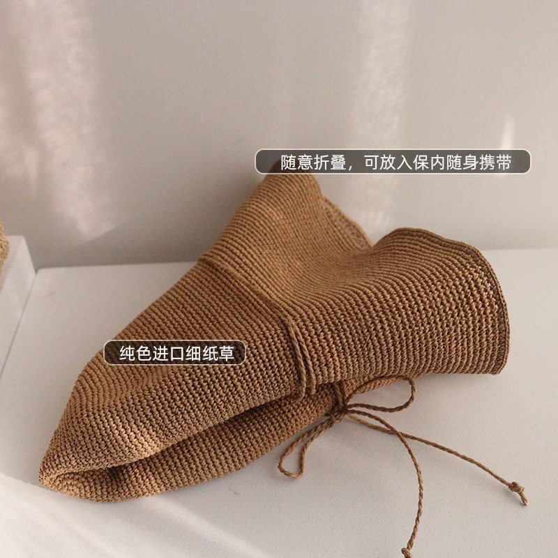 📚 日本手工钩针拉拉草帽可折叠遮阳帽子女夏天防晒渔夫帽出游太阳帽