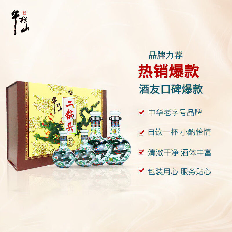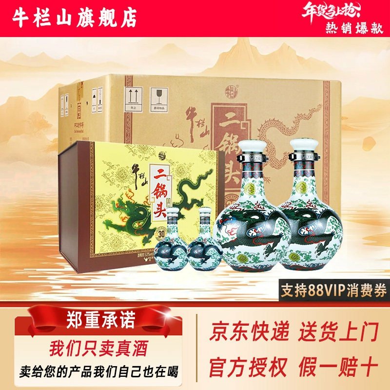 📚 牛栏山二锅头青龙清香型白酒(53度500ml*2+125ml*2)*3礼盒整箱