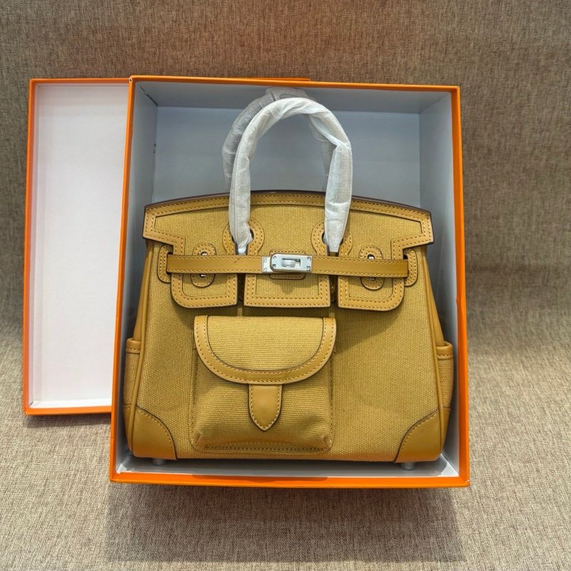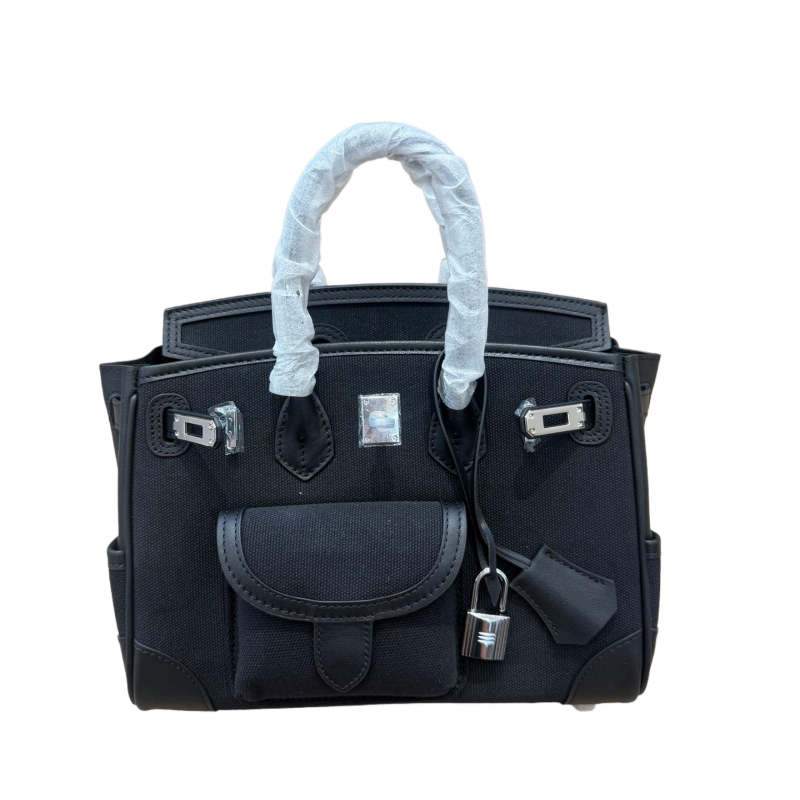 📚 2025新款手工铂金包cargo头层牛皮swift皮拼帆布凯莉手提真皮女包