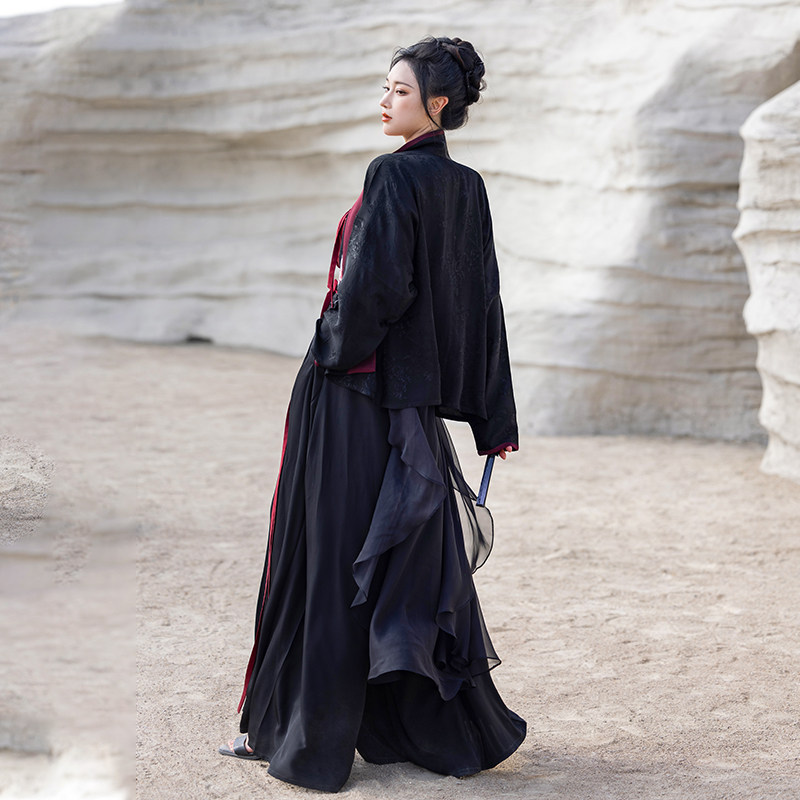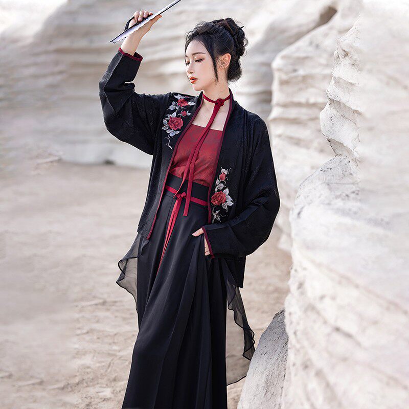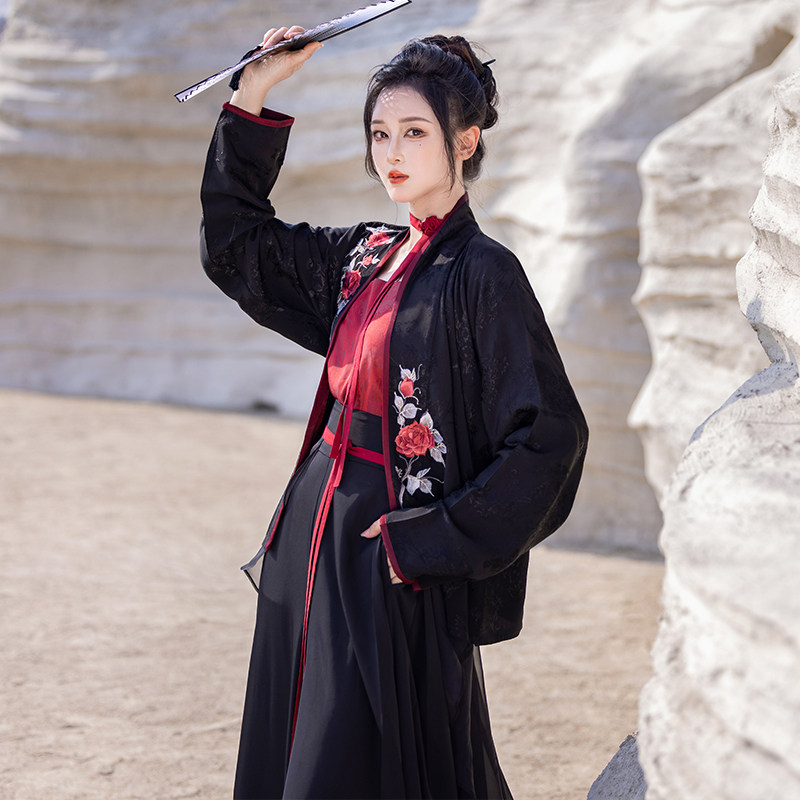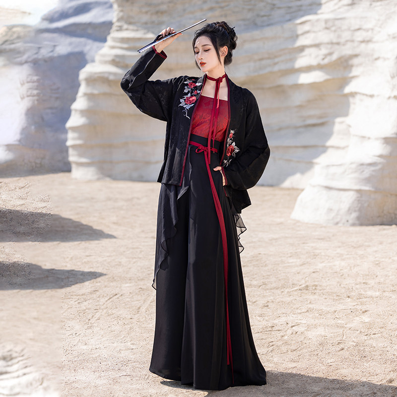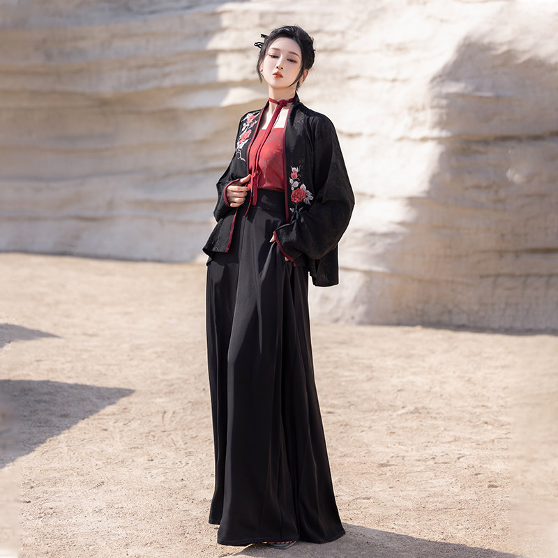 📚 拟梦朱砂痣国风原创宋制刺绣玫瑰飞机袖帅气通勤酷飒显瘦黑色宋裤
