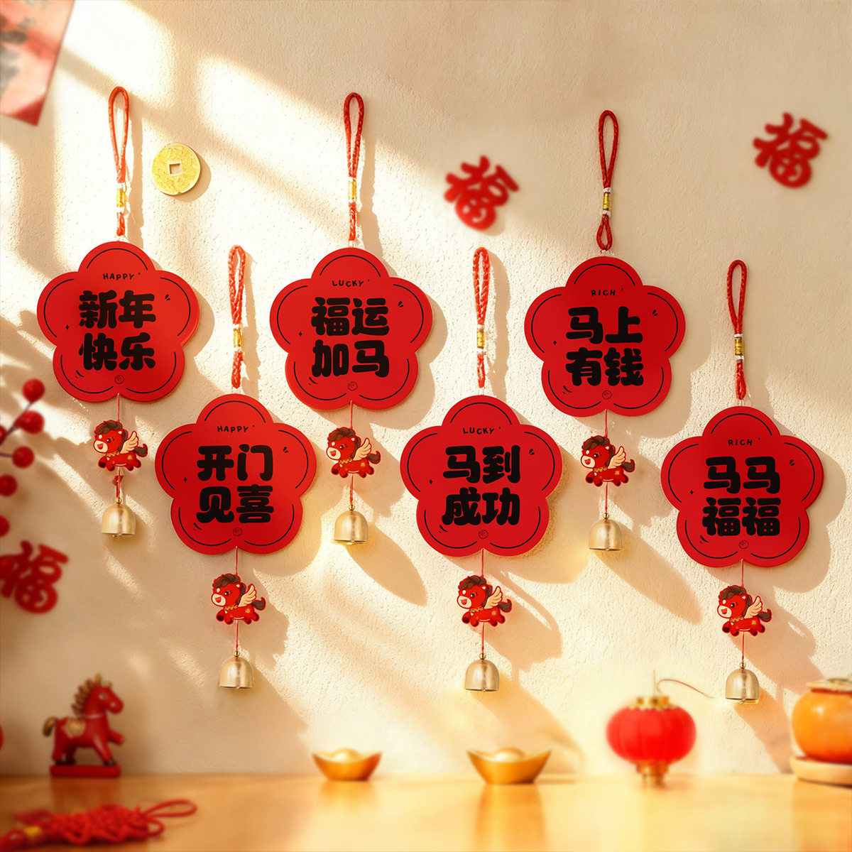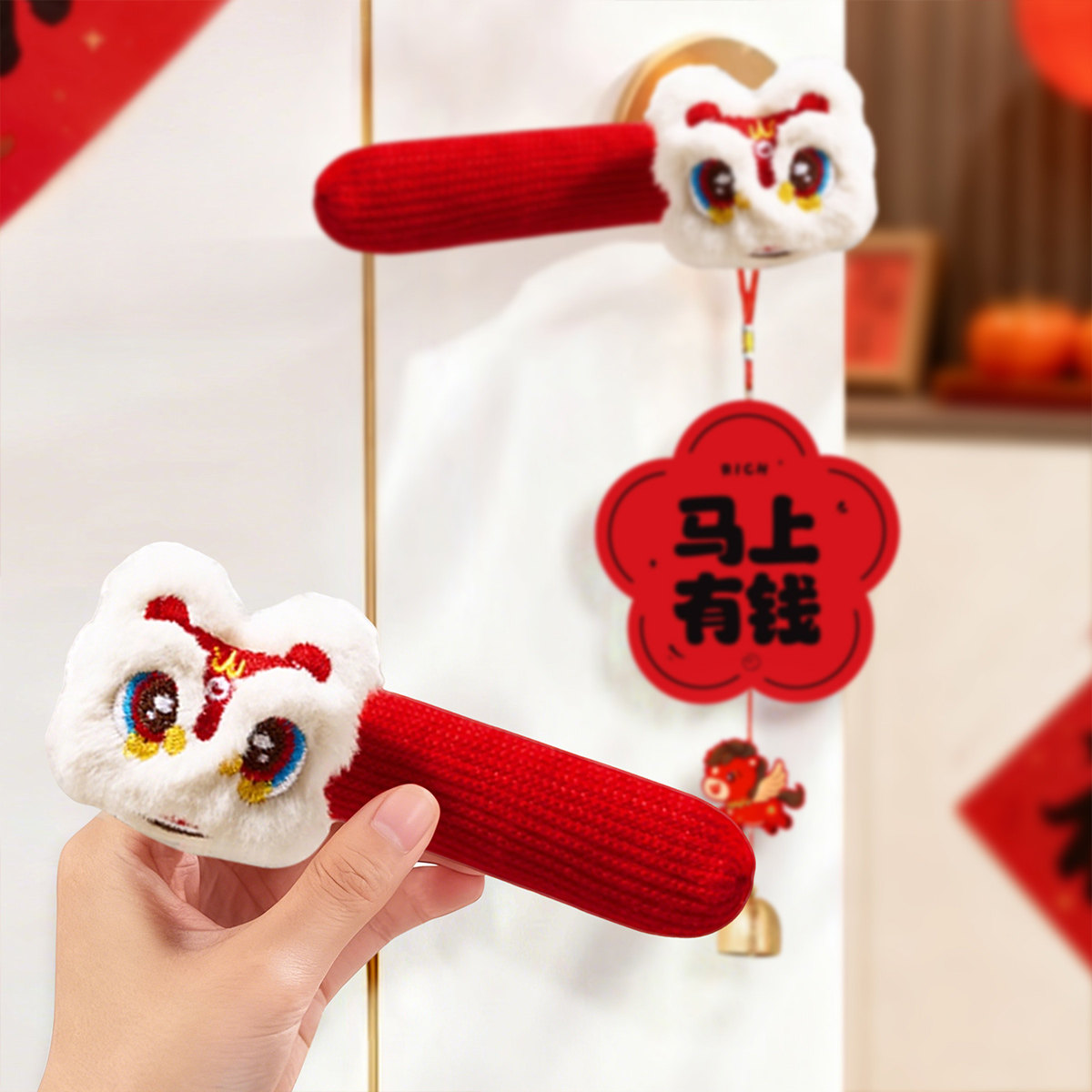 📚 2026新年门把手铃铛挂饰醒狮保护套卧室门布置乔迁春节家用小挂件
