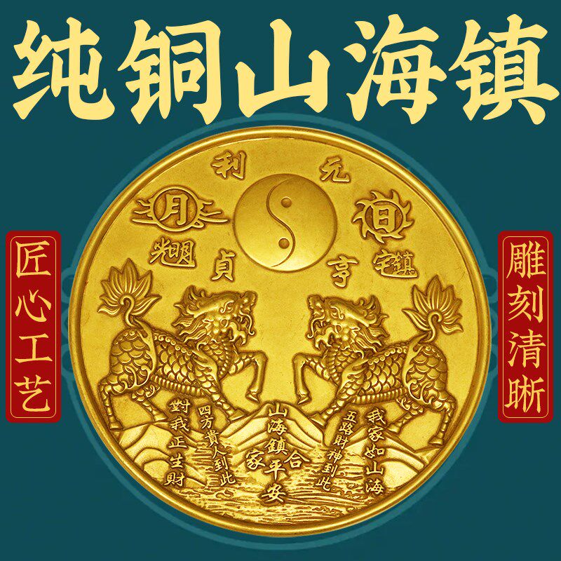 📚 麒麟山海镇黄铜室内外大门对路化白虎抬头四神兽铜镜山海镇