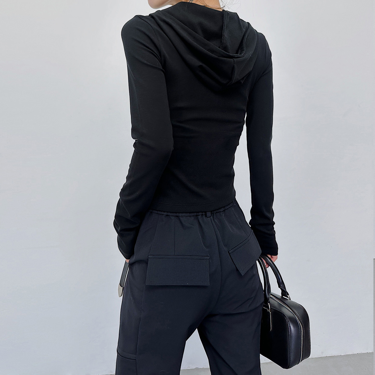 📚 新款黑色休闲早春韩系穿搭打底衫上衣v领长袖连帽T恤薄款针织衫