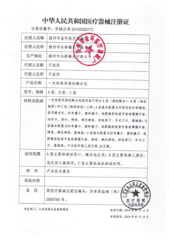 📚 金环一次性无菌清创缝合包外科医生手术使用无菌缝合包换药拆线包