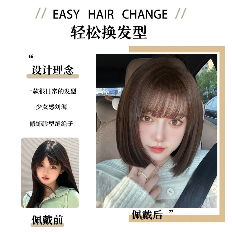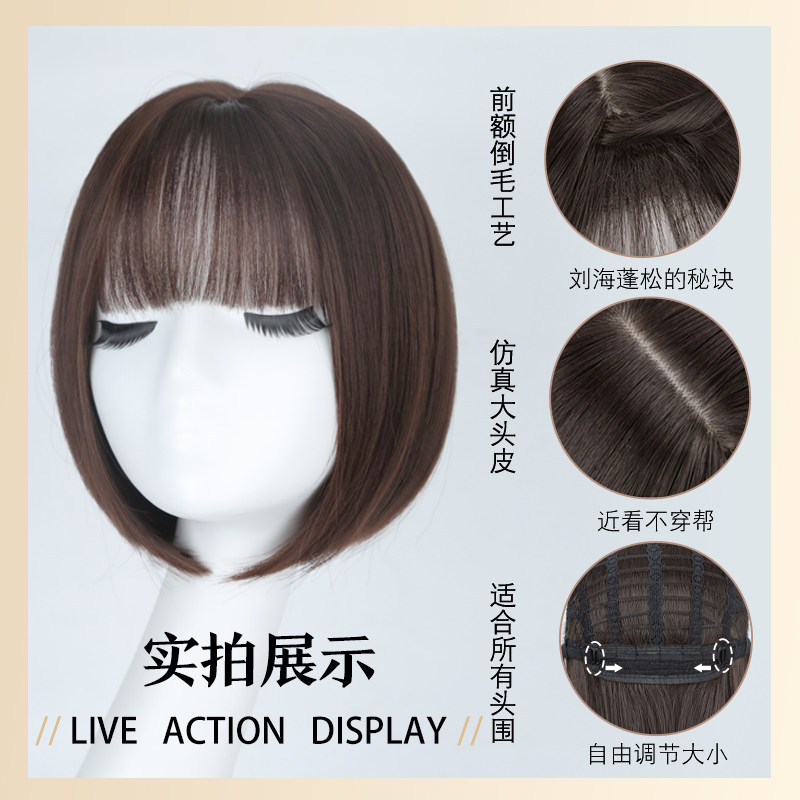 📚 假发女短发仿真发全真发自然隐形新款一刀切波波头整顶假发全头套