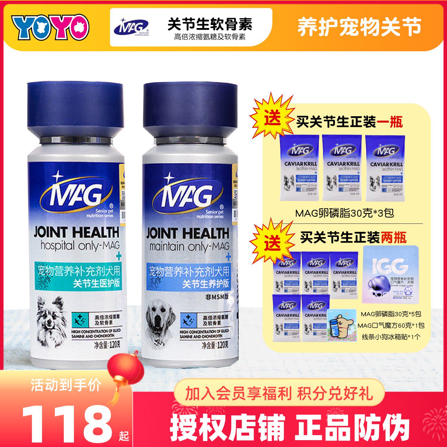 📚 MAG宠物犬用关节生狗狗浓缩鲨鱼软骨素钙片关节维护髌骨瘸腿跛行