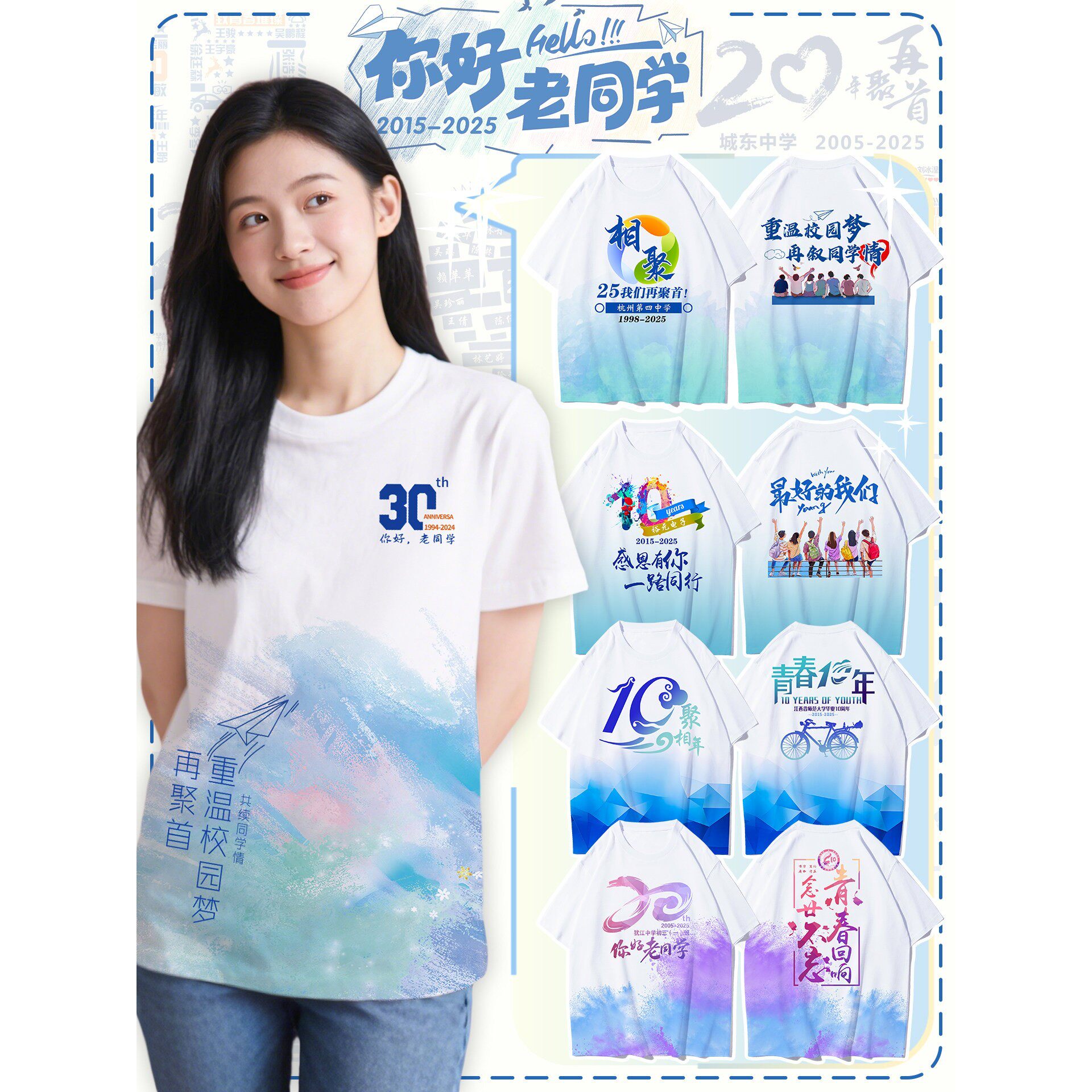 📚 同学聚会t恤衣服定制20年30年纪念活动团队同学会短袖T恤服装定制