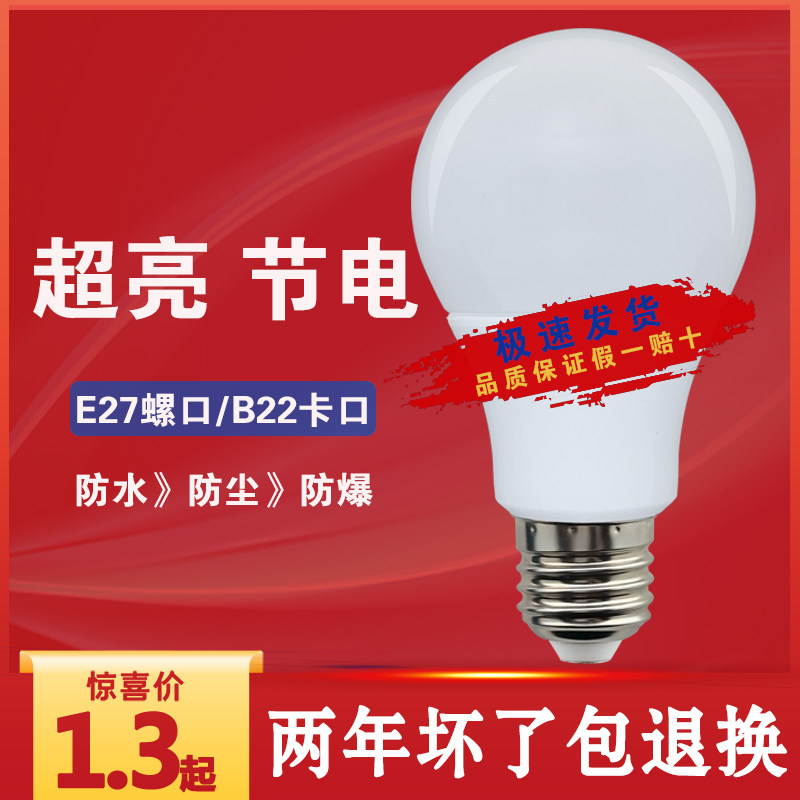 📚 led灯泡E27大螺口3w家用防水超亮节能灯螺纹电灯泡B22卡口球泡