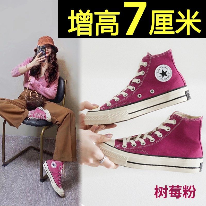 📚 明星帆布鞋女2026新款高帮网红ins潮小众秋季树莓厚底内增高板鞋
