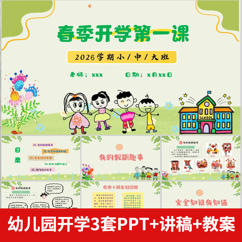 📚 2026春季幼儿园开学第一课大班中班小班PPT模版良好习惯安全+讲搞