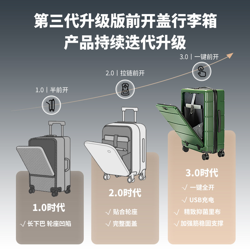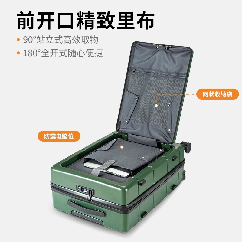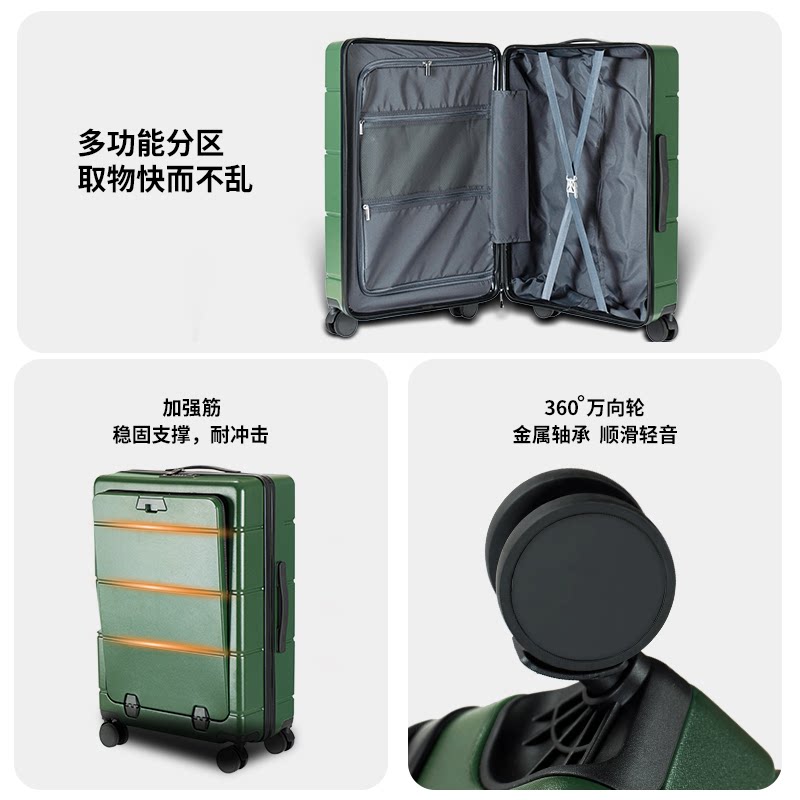 📚 普娜米前置开盖行李箱多功能商务轻便20寸登机箱大容量拉杆旅行箱