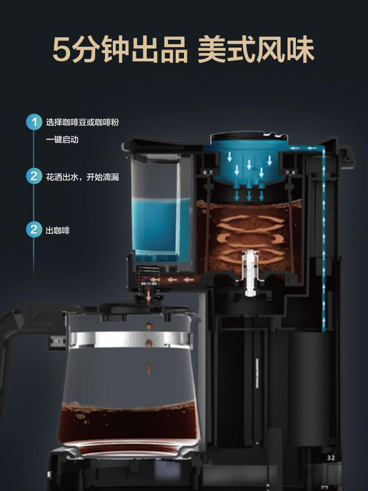 📚 灿坤全自动美式咖啡机家用办公室滴漏现磨咖啡机咖啡研磨