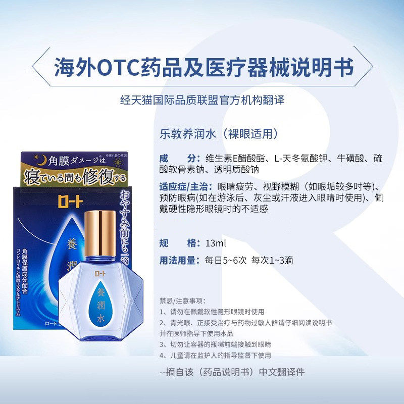 📚 日本ROHTO乐敦养润水眼药水夜间修复眼角膜视疲劳干涩流泪滴眼液