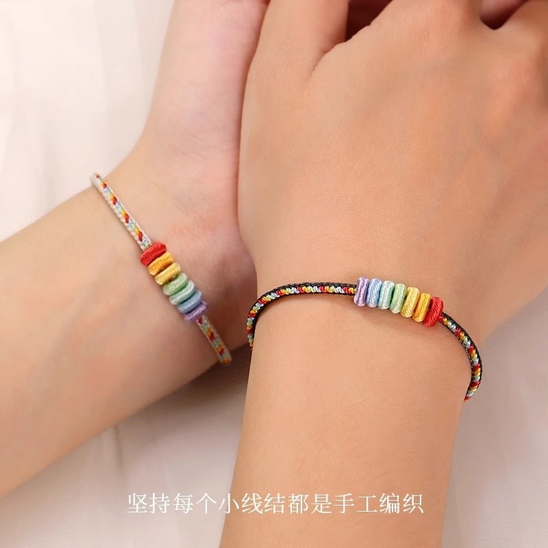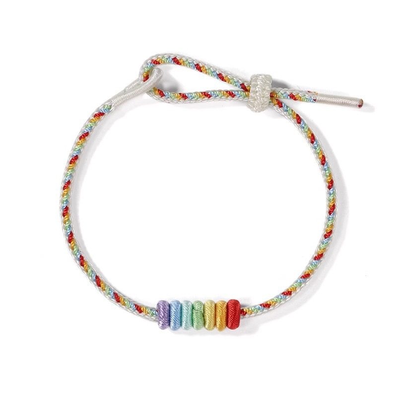 📚 圆满结手工编织无痕线圈DIY手绳饰品简约彩虹情侣款成品编织