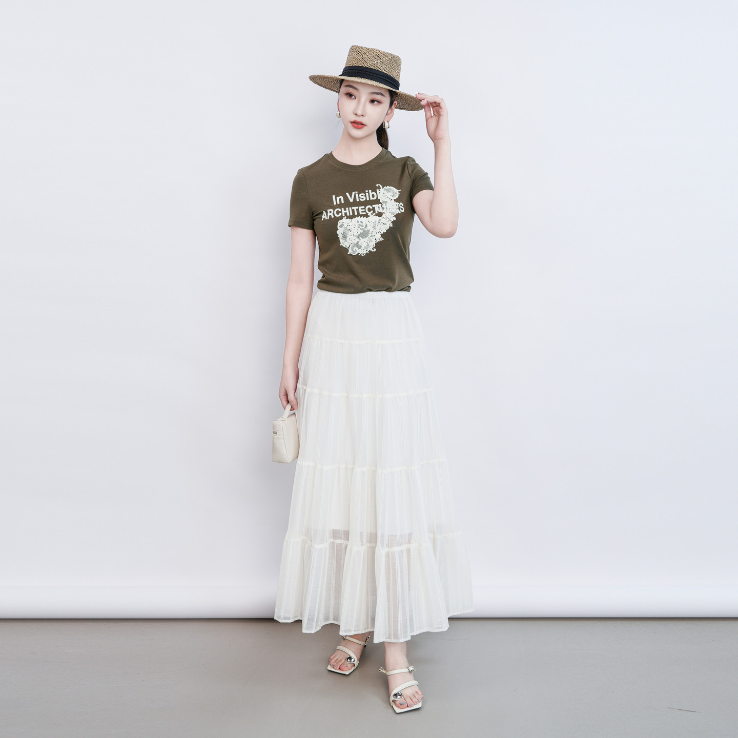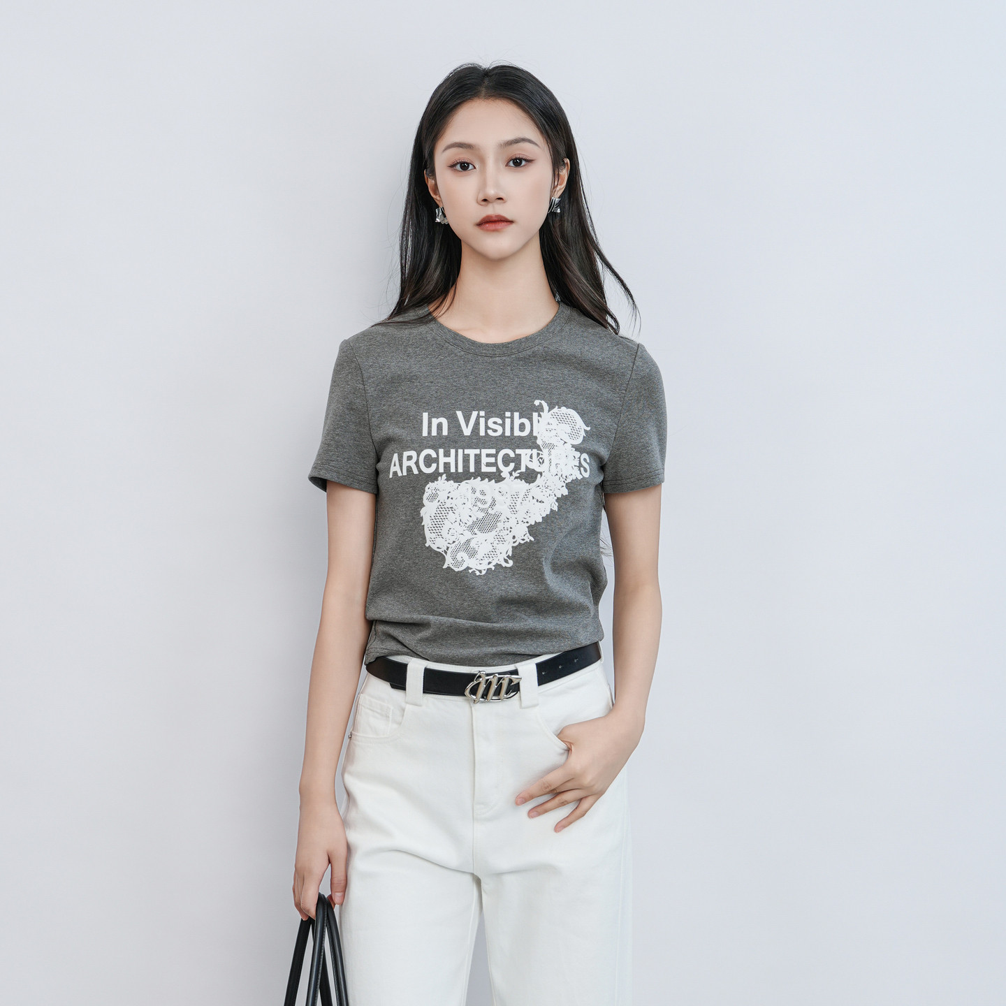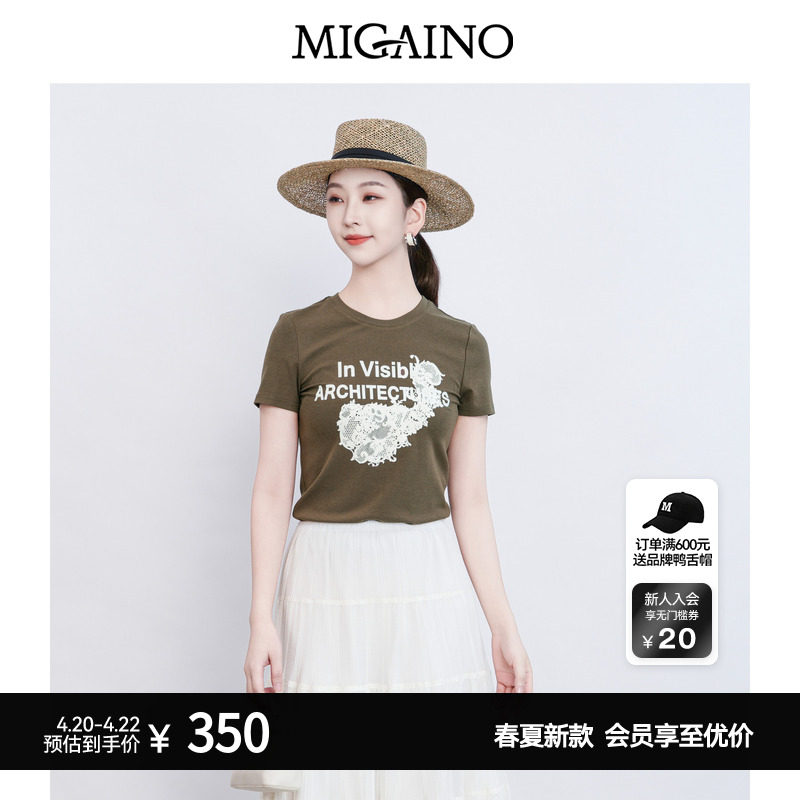 📚 Migaino曼娅奴女装2026夏季新款圆领修身印花正肩T恤MQ22RA031