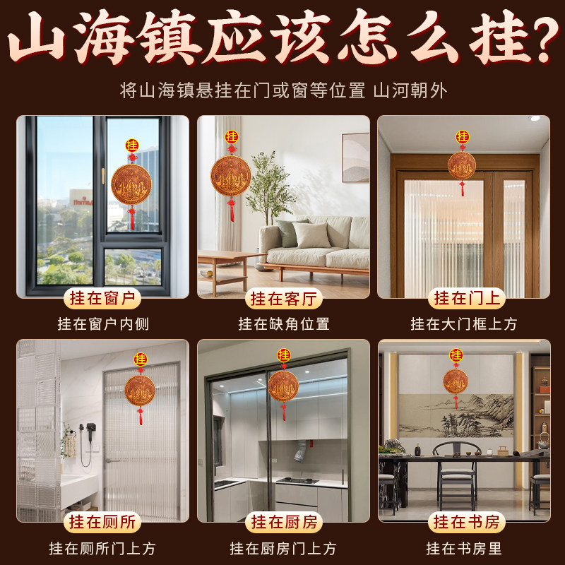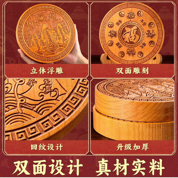 📚 纯桃木山海镇室内摆件八卦镜室外挂件双面山海镇八卦凸镜摆件装饰