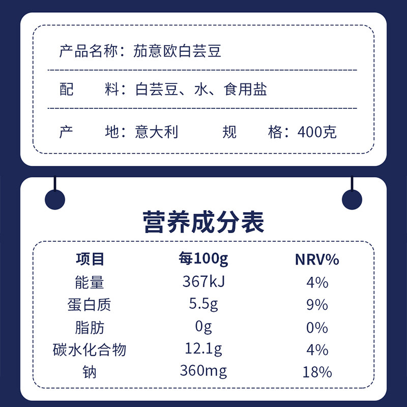 📚 CiRio茄意欧白芸豆罐头400g意大利进口0脂脂白豆蔬菜色拉即食扁豆
